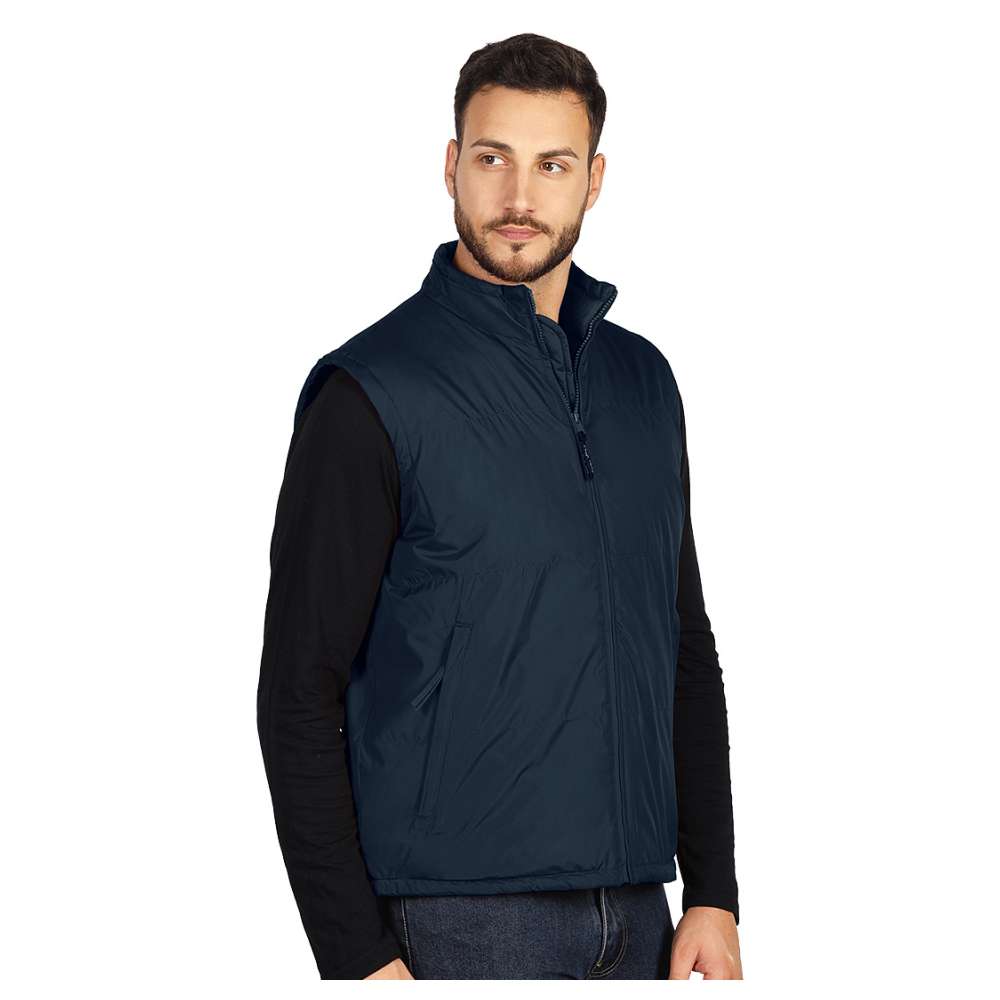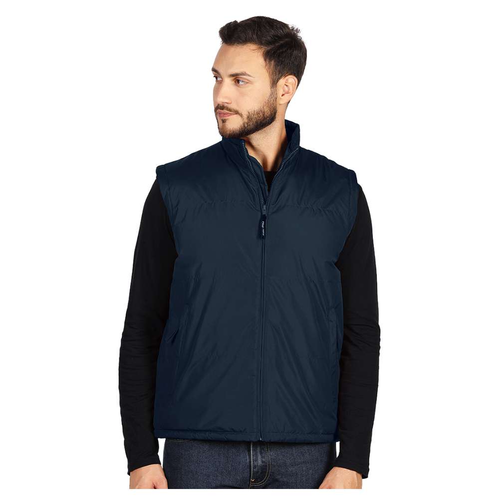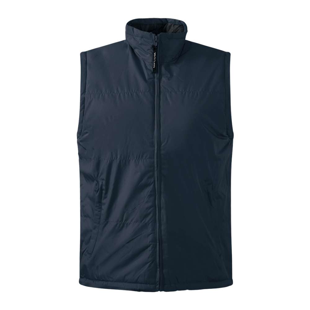 | Opis | Prsluk, štepan, visoka kragna, dva prednja džepa sa rajsferšlusom i dva unutrašnja džepa, postavljen tamno sivim poliesterom, elastični učkuri sa steznim regulatorima u dnu, skriveni unutrašnji rajsferšlus na leđima za lakši pristup prilikom štampanja |