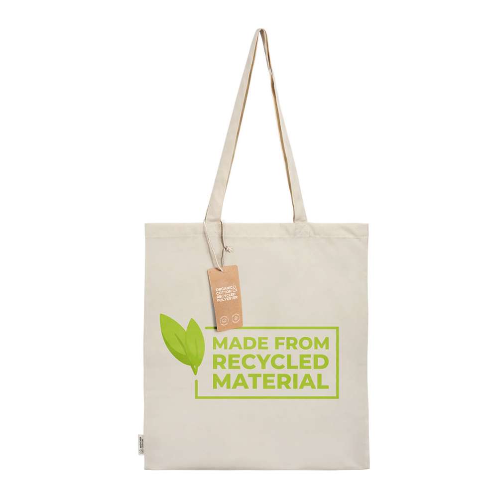 Opis | Materijal: RPETDimenzija: 38 x 42 cm Ručke: 70 x 2.5 cm Pakovanje: 200/50 Preporučena štampa: sublimacija |