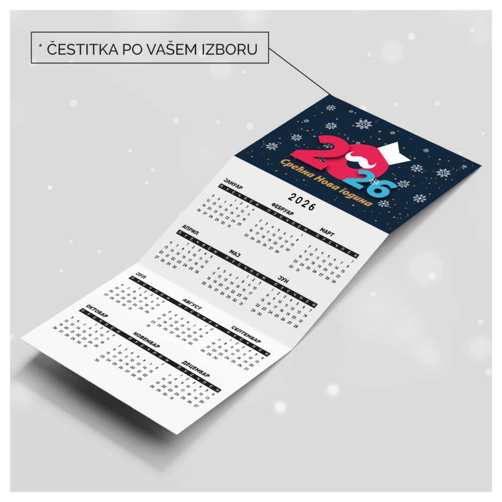 Poslovna novogodišnja čestitka sa kalendarom i štampom teksta po želji.