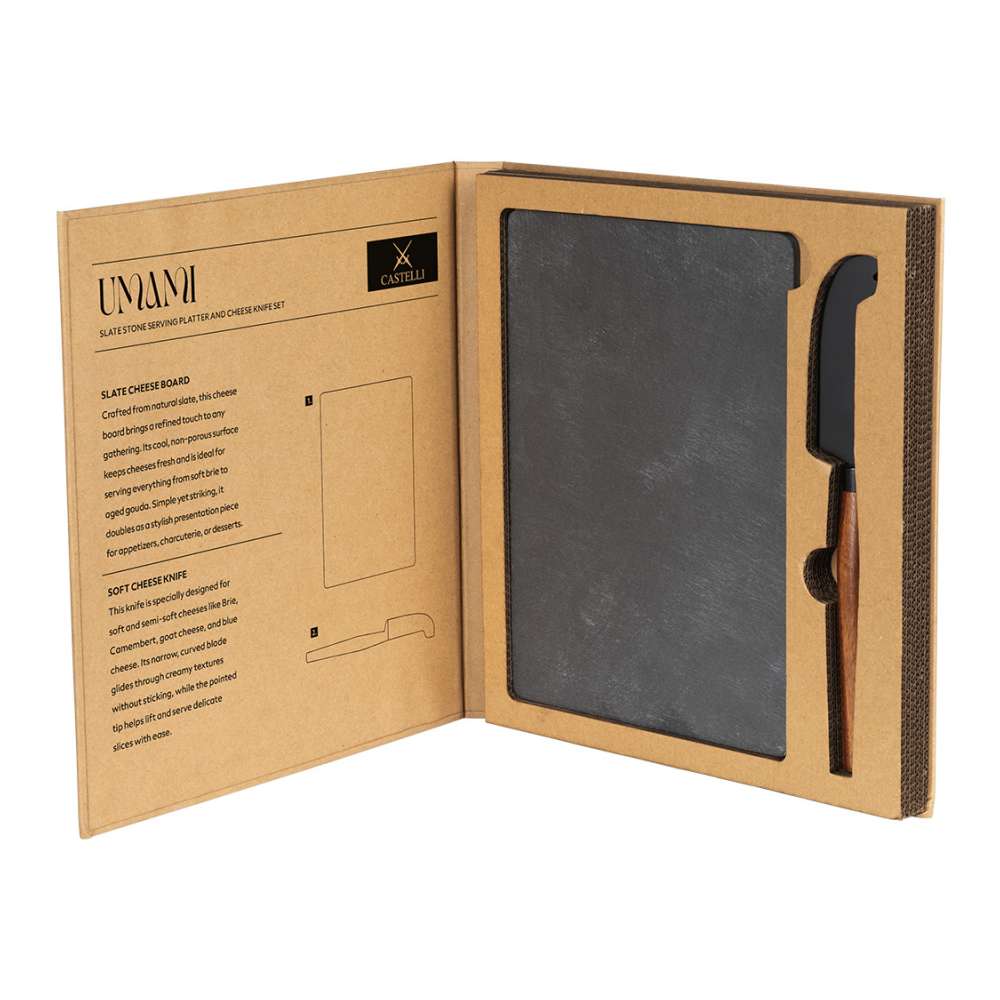 Set kamena ploča i nož za sir sa drvenom drškom, 2/1