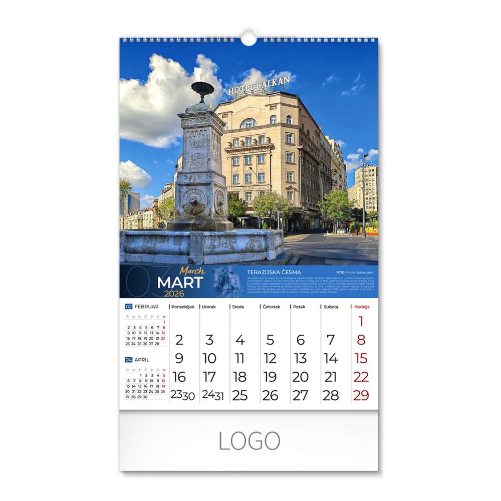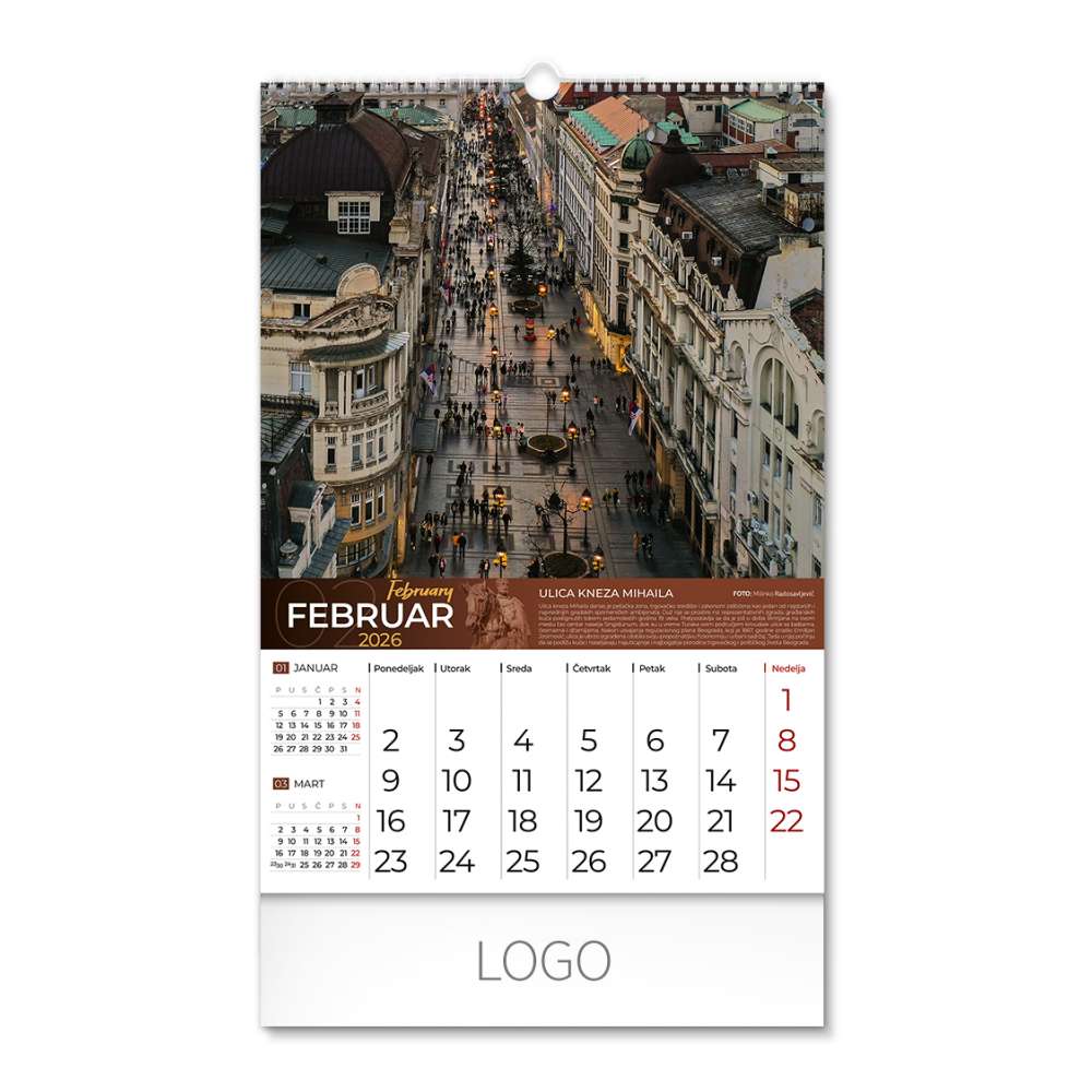 | Zidni kalendar | 13 listova, mesečni |