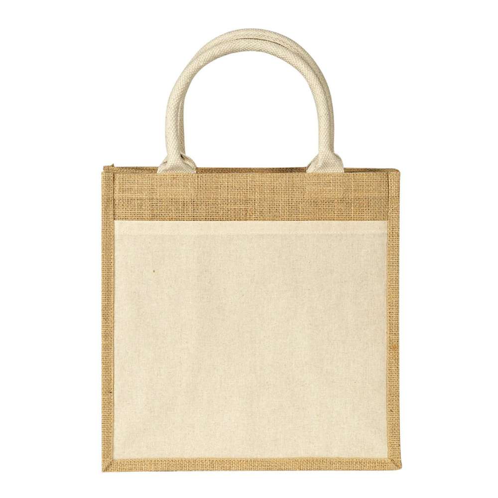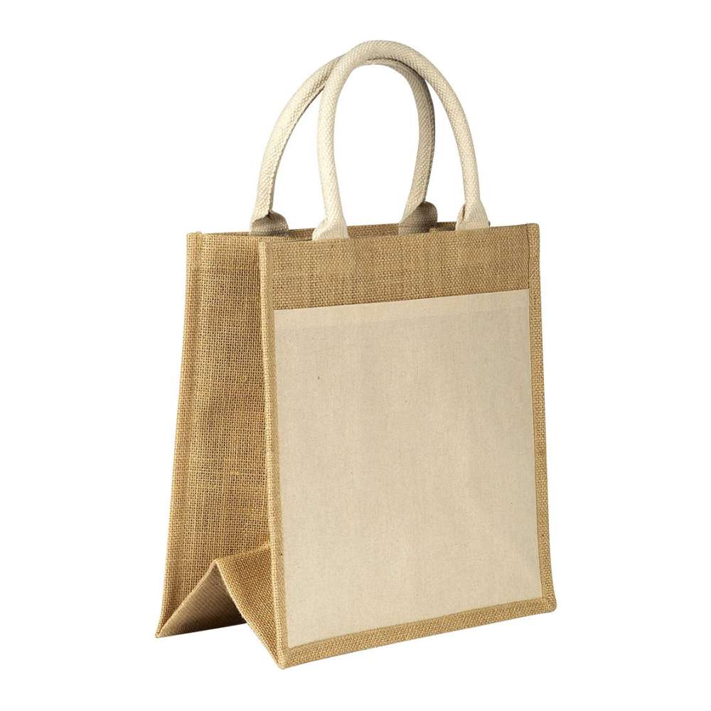 Materijal: juta i pamuk Dimenzija: 30 x 30 x 19 cm Ručke: 38 x 1.5 cm Pakovanje:Preporučena štampa: sito, preslikač