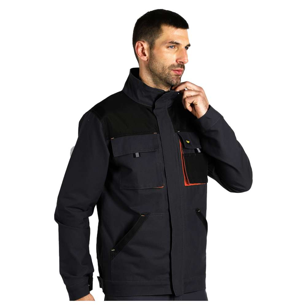 | Opis | Bluza, 260gr/m2, platno prepletaj, visoka kragna, preklopsa čičak trakama preko rajsferšlusa, elastične ranfle oko rukava, ojačanja od 600D poliestera na mestima izloženim većem habanju (džepovi, ramena, laktovi), duži zadnji deo, dva džepa na grudima, dva prednja džepa, praktični odeljci za alat, reflektivni detalji, etiketa za lične podatke unutra |