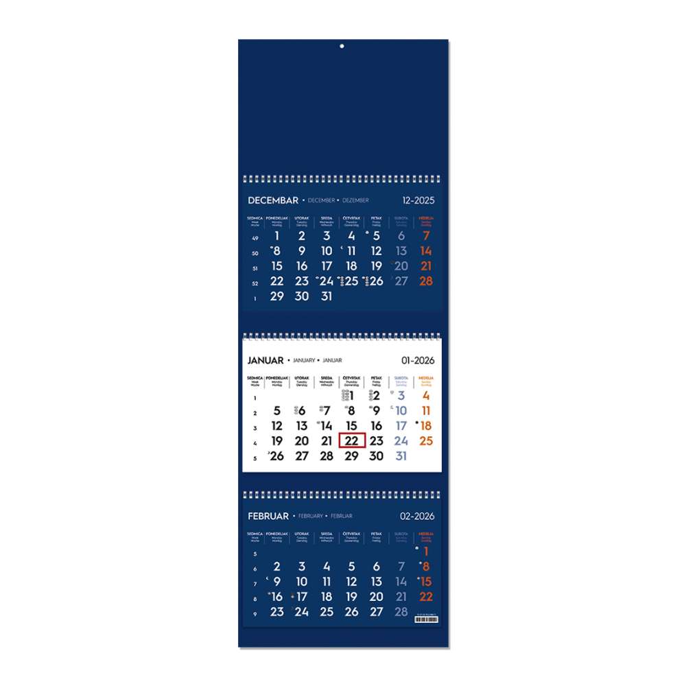 Zidni kalendar: 3 x 12 listova, tromesečni, trodelni