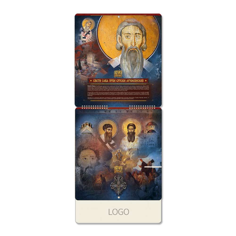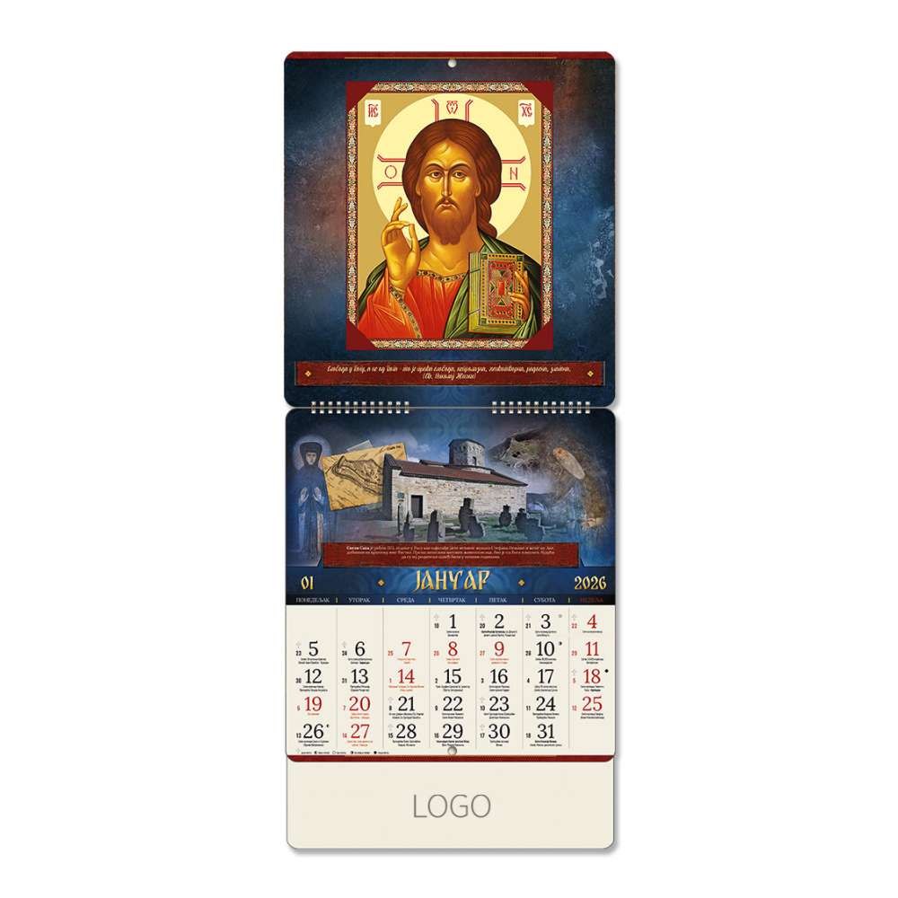Zidni kalendar: 15 listova, mesečni, 12 ikona urađeno u tehnici zlatotisak