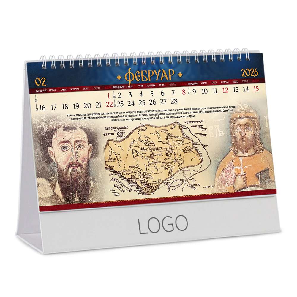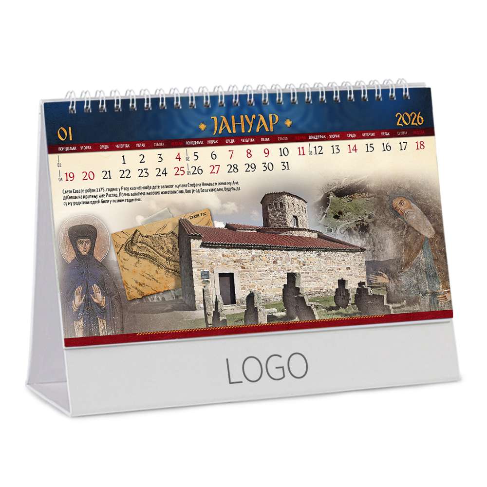 | Opis | Stoni kalendar: 14 listova, mesečni, sa zlatotiskom na predlistu |