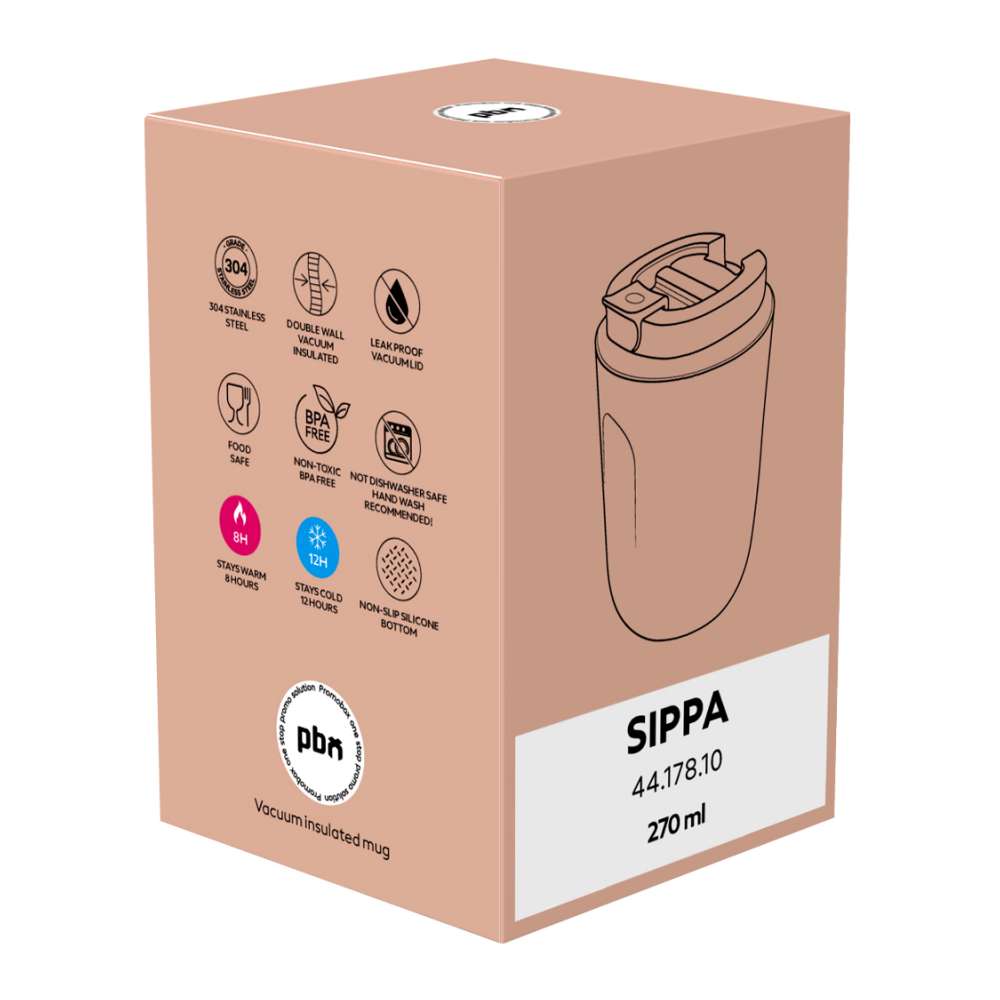 | Opis | SIPPA je šolja zapremine 270 ml izrađena od kvalitetnog nerđajućeg čelika, dizajnirana za one koji žele pouzdan termo partner za svakodnevnu upotrebu - bilo da je reč o kancelariji, putovanjima ili aktivnostima napolju. Zahvaljujući dvostrukom zidu i termoizolaciji, šolja pouzdano održava toplotu toplih napitaka i svežinu hladnih pića. Poklopac koji sprečava prosipanje povećava praktičnost u pokretu, dok silikonsko dno sprečava klizanje i povećava stabilnost na različitim površinama. Ovaj model spaja funkcionalnost i ergonomski dizajn, čineći SIPPA odličnim promotivnim proizvodom ili poslovnim poklonom, spremnim za brendiranje i efektno predstavljanje.Ključne karakteristike: Materijal: nerđajući čelik kvaliteta 304 • Kapacitet: 270 ml • Dvostruki zid sa vakuum izolacijom • Performanse: Termoizolacija do 12 sati (toplo/hladno) • Powder coating završna obrada • Nepropustan čep • Nije pogodno za pranje u mašini za sudove • Nije pogodno za upotrebu u mikrotalasnoj pećnici • Poklon pakovanje |