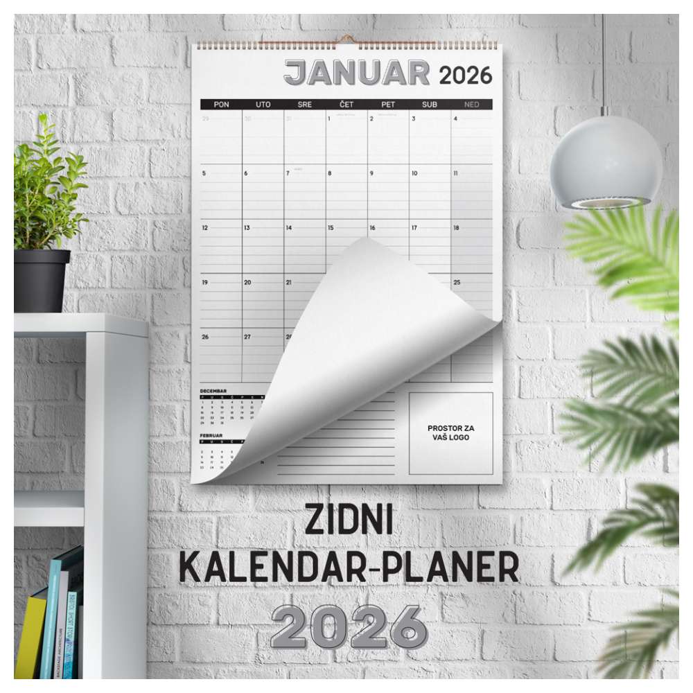 Zidni planer, 330x480mm. Štampa 1/0. Štampani podaci firme na svakom listu.